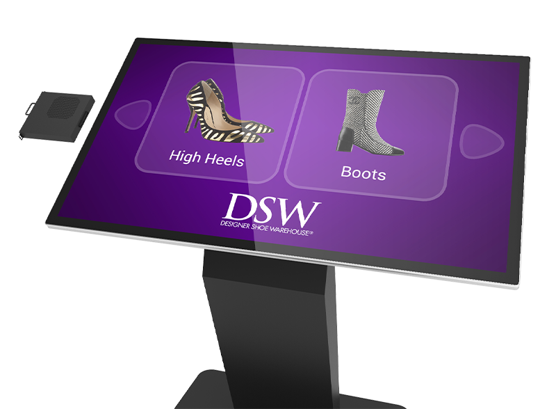 Ce kiosque interactif est livré avec un lecteur multimédia Android intégré de série de série. Une version Windows OS intégrée est également disponible sur demande. Pour une flexibilité ultime, ce kiosque dispose également d’un casier interne afin qu’un lecteur multimédia tiers ou un PC NUC puisse être utilisé.